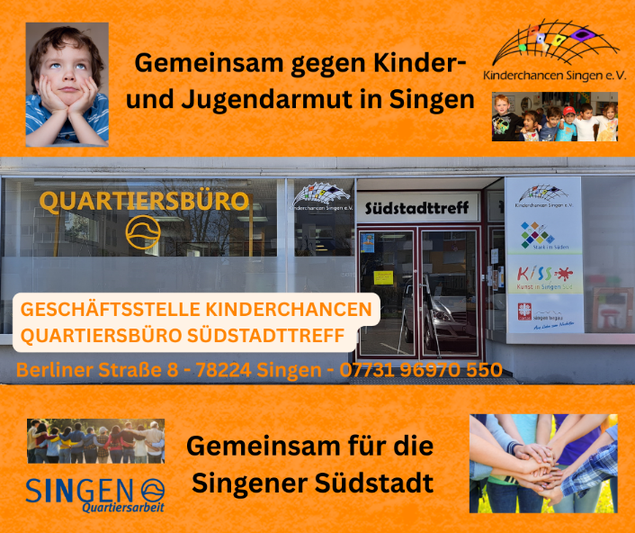 Unsere Mission: Mehr als jedes fünfte Kind in Singen lebt in Armut – das wollen wir ändern. Wir setzen uns dafür ein, dass Kinder und Jugendliche Chancen bekommen, zu wachsen, zu lernen und zu träumen. Im Quartiersmanagement „Stark im Süden“ fördern wir Bürgerbeteiligung, stärken die Südstadt und gestalten ein lebendiges, vielfältiges Quartier, in dem alle mitbestimmen können.